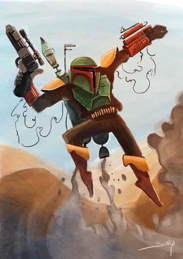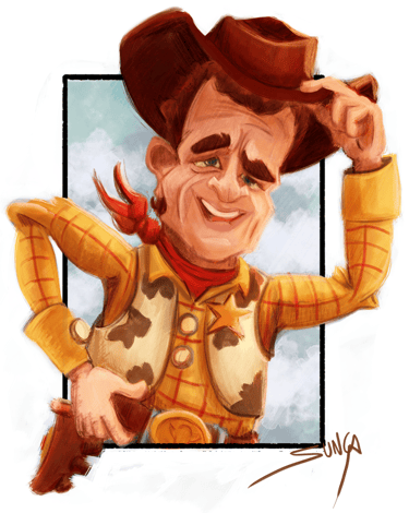 Nesta galeria, Sunça presta suas homenagens do jeito que sabe: com traço solto, humor afiado e uma boa dose de irreverência. Personagens da cultura pop ganham novas caras, jeitos e absurdos. Tudo passado pelo filtro cartunesco e bem-humorado do mineiro que não consegue desenhar nada “normal”.
