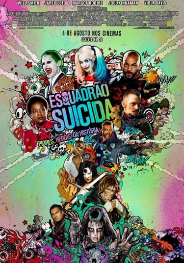 Dirigido por David Ayer, roteirizado por David Ayer. Com Margot Robbie, Will Smith, Jared Leto, Joel Kinnaman, Scott Eastwood, Cara Delevingne, Viola Davis, Jai Courtney, Jay Hernandez, Adam Beach e Adewale Akinnuoye-Agbaje.