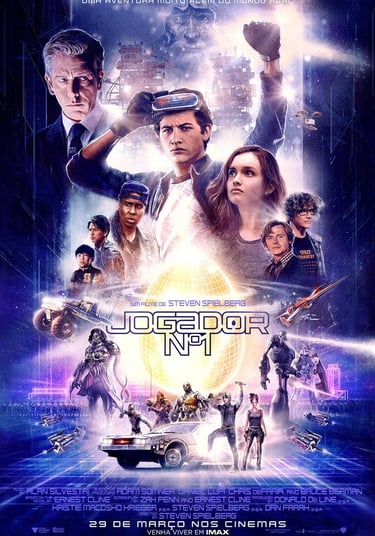 O roteiro de Zak Penn e Ernest Cline (Autor do livro) segue uma estrutura comum, jovem órfão desconhecido e esquecido pelo mundo têm a possibilidade de se tornar um “herói”, salvá-lo e ficar com a garota. Não inova e em diversos momentos se mostra muito expositivo. Mas é bem sucedido em estabelecer paralelos, sutis, sobre a nossa sociedade, o que somos hoje e que caminho tomamos. Hoje, já estamos cada vez mais conectados e menos ligados da realidade. O foco é mesmo a caça ao tesouro, a conquista dos desafios e a compreensão dos enigmas. Uma aventura divertida e despretensiosa no melhor estilo “Os caçadores da Arca Perdida” e “Os Goonies”. E se na trama um grupo de “crianças” luta contra adultos e corporações malvadas, quem melhor do que o diretor de “E.T. - O Extraterrestre” para comandar o projeto (Também diretor de Os caçadores da Arca Perdida e diretamente envolvido na produção de Goonies). Logo no início Spielberg mostra a que veio e o tom de toda a produção. Com um ágil e dinâmico plano sequência, que valoriza os cenários e a direção de arte, nos apresenta o mundo e sociedade em que a história acontece. Uma direção enérgica e criativa, que encanta os espectadores. Tudo isso ao som de hits oitentistas. Van Halen, George Michael, Blondie, Tears for Fears, dentre outros, marcam presença na trilha. “Jump” parece ter sido feita para a abertura em plano sequência mencionada. É neste vigor das aventuras infanto-juvenis de 1980 que “Jogador N°1” tem sua maior força. O cineasta faz que questão de homenagear nomes que, junto consigo, impulsionaram toda essa cultura pop. George Lucas, Robert Zemeckis, Richard Donner, John Hughes, dentre outros. Zemeckis inclusive têm seu nome vinculado a um artefato do “jogo” que tem como função voltar no tempo.