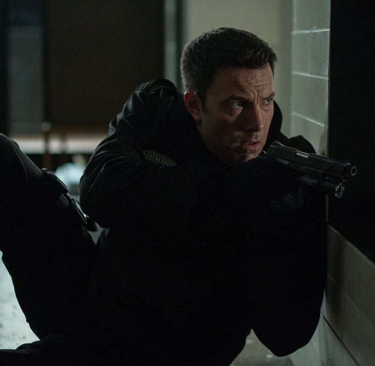 Affleck demonstra a dificuldade de interação social e o autismo de seu personagem basicamente como um homem inexpressivo. Ainda que o filme saiba aproveitar bem essa dificuldade em alguns momentos como quando acena para o casal após um tiroteio ou quando em um raro momento do filme se mostra confortável enquanto avalia as finanças da empresa e dança. Ben Affleck com sua figura imponente convence nas cenas de ação e mostra que pode ser bem aproveitados em perseguições, lutas e tiroteios. Confesso que na “batalha” final estava esperando a qualquer momento que ele soltasse um “I’m Batman”. Anna Kendrick não tem muito tempo de tela inicialmente se mostra uma personagem interessante que aos poucos descamba para interesse romântico. Já J.K. Simmons e Cynthia Addai-Robinson, mesmo com uma participação menor, estão presentes ao longo de todo o filme. Ainda que suas sequências não afetem em nada a trama principal do longa.