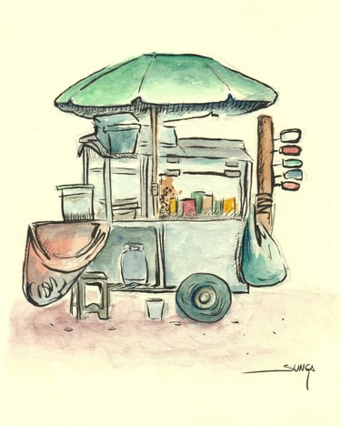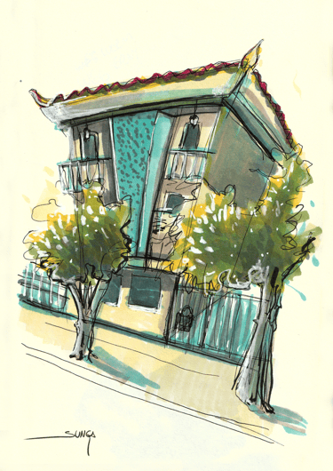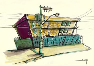 Rabiscos e pinturas, registros artísticos do cartunista ao longo dos anos, mostrando sua capacidade de capturar lugares e momentos de forma irreverente e única. Os desenhos refletem seu olhar atento, registrando não apenas a arquitetura e a paisagem, mas também o espírito das cidades e dos momentos vividos.